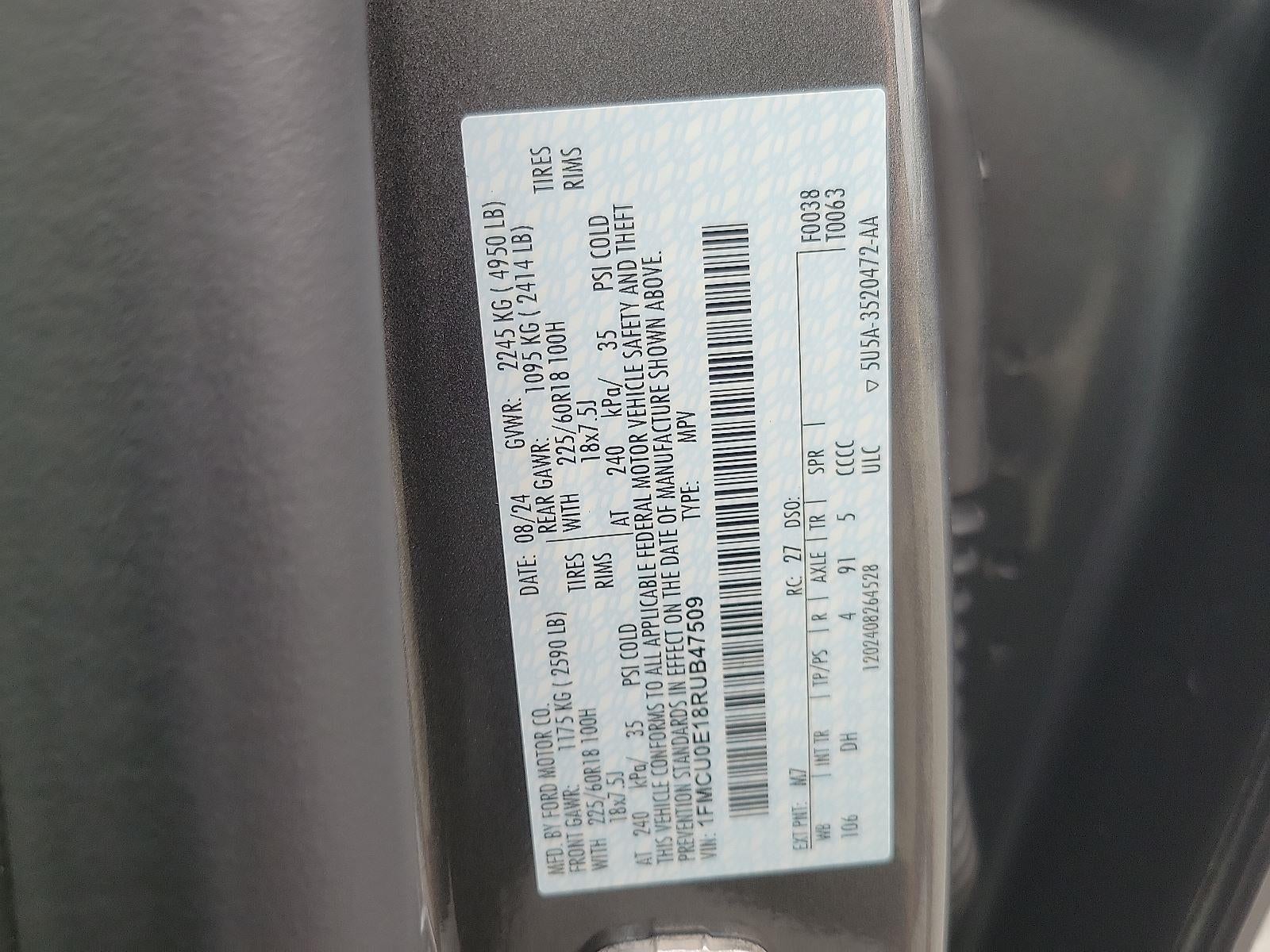 - Vehicle Name: Ford Escape