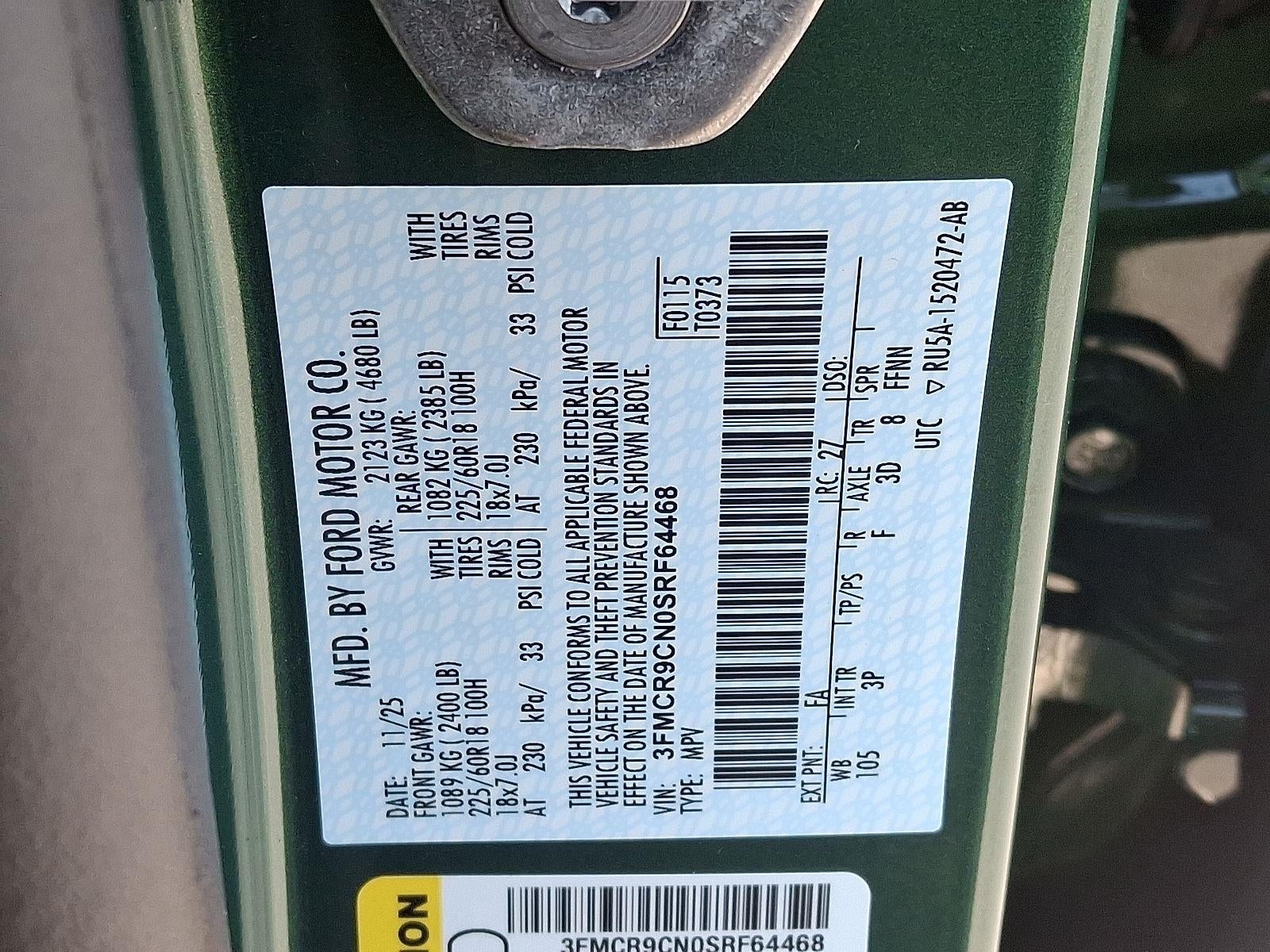 ENGINE: 1.5L ECOBOOST, TRANSMISSION: 8-SPEED AUTOMATIC, EQUIPMENT GROUP 300A, ERUPTION GREEN METALLIC, EBONY/ROAST, PREMIUM TRIMMED FRONT BUCKET SEATS W/EBONY/ROAST, OUTER BANKS TECH PACKAGE+, POWER MOONROOF, FRONT LICENSE PLATE BRACKET, CARGO MANAGEMENT SYSTEM (SHELF/DIVIDER/TABLE)