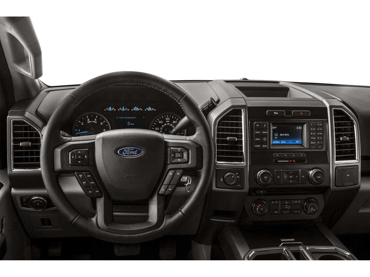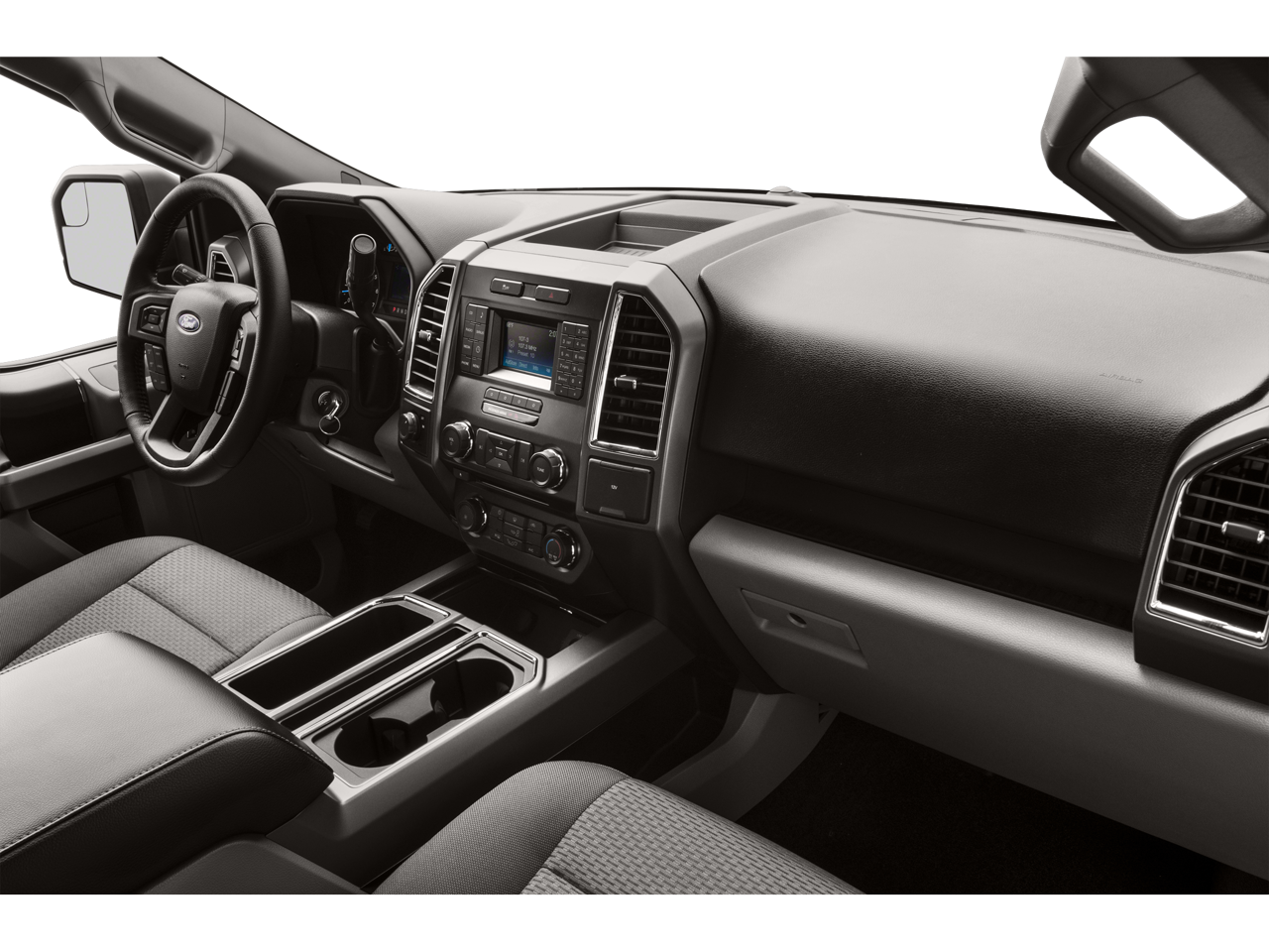 - Includes vehicle with standard equipment, 10-way power driver and passenger seats with power lumbar adjustment, heated front seats, 4.2 inch productivity screen in instrument cluster, auto-dimming rearview mirror, leather-wrapped steering wheel, rear view camera with Dynamic Hitch Assist, reverse sensing system, power-adjustable pedals, rear under seat storage, manual folding, power glass side view mirrors with heat, turn signals, auto-dimming feature on drivers side, and black skull caps, power-sliding rear window with privacy glass and defroster, overhead console, front and rear map lamps, LED box lighting, Class IV trailer hitch with Smart Trailer Tow Connector and 4-pin/7-pin wiring, remote start system, SiriusXM Satellite Radio with 7 speakers, complimentary one year prepaid subscription to SYNC with MyFord Touch voice-activated in-vehicle connectivity system including 8 inch center stack touch screen with audio control and compass, two USB charging ports,SD card reader, and audio input jacks, one 110V/400W outlet in instrument panel (two with console seats), and XLT Chrome Appearance Package including 18 inch chrome-like PVD wheels, 275/65R18 OWL all-terrain tires, chrome billet style grille with chrome surround and black mesh insert, chrome door handles with black strap, chrome front tow hooks, chrome single-tip exhaust, and chrome step bars. SiriusXM U.S. Satellite Service is available in the 48 contiguous United States and D.C. Selection of XLT Sport Appearance Package removes XLT Chrome Appearance Package.