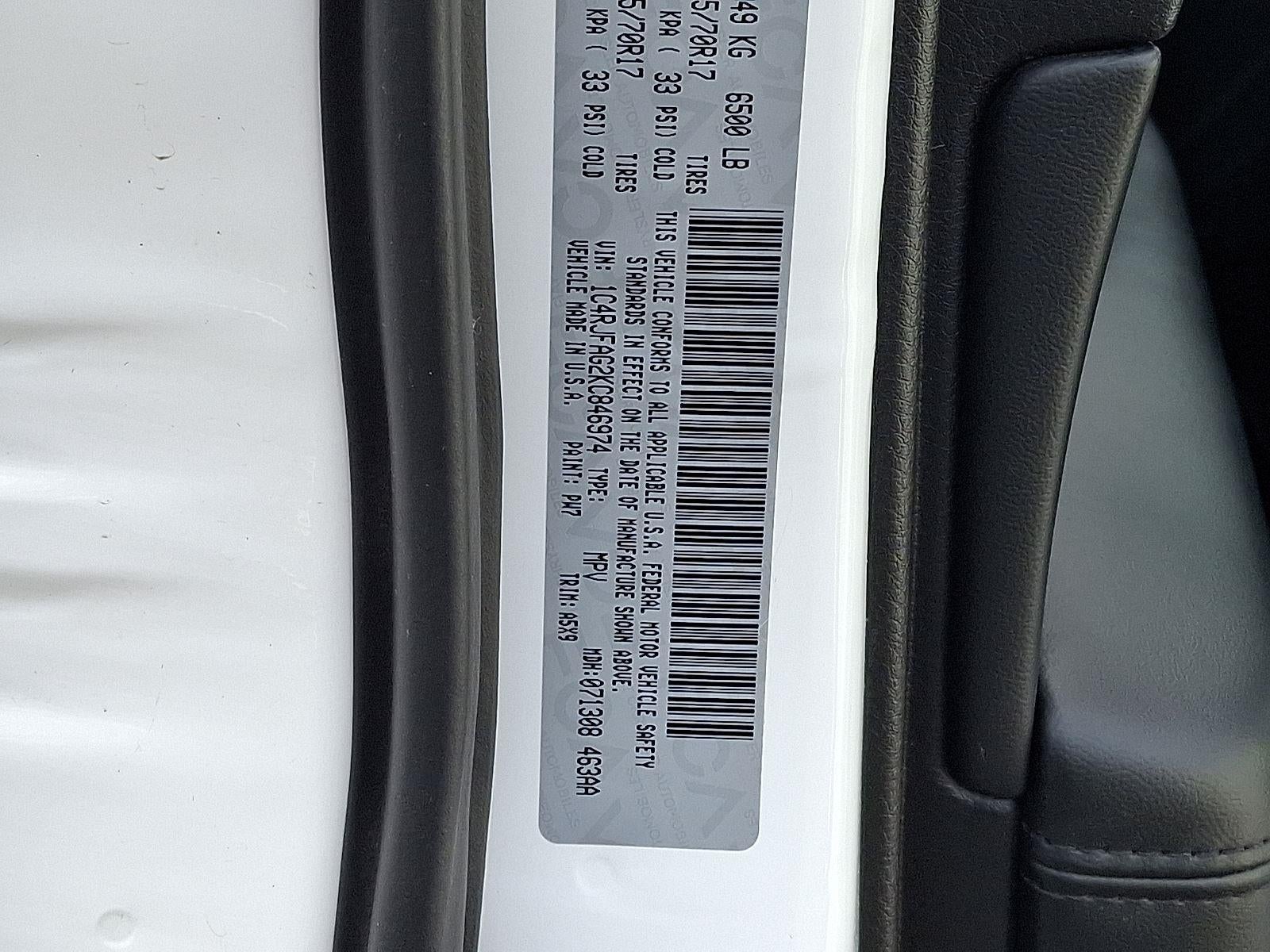 ENGINE: 3.6L V6 24V VVT UPG I W/ESS, TRANSMISSION: 8-SPEED AUTOMATIC (850RE), QUICK ORDER PACKAGE 2BE LAREDO E, WHEELS: 17"" X 8.0"" SILVER ALUMINUM, TIRES: P245/70R17 BSW ON/OFF ROAD, BRIGHT WHITE CLEARCOAT, BLACK, CLOTH BUCKET SEATS, FRONT LICENSE PLATE BRACKET, MANUFACTURER'S STATEMENT OF ORIGIN