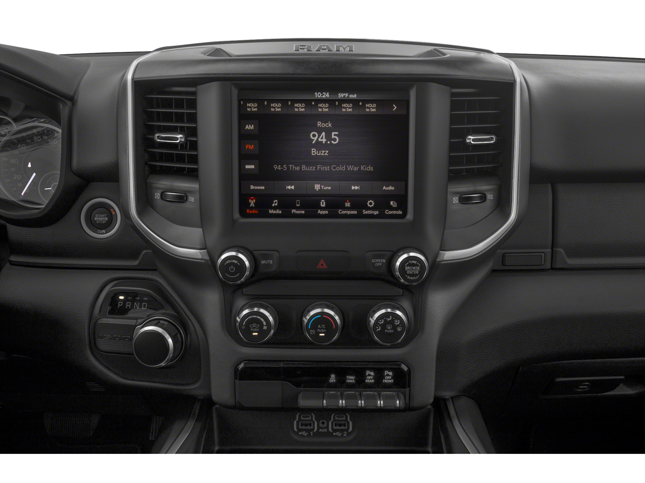 ENGINE: 5.7L V8 HEMI MDS VVT, TRANSMISSION: 8-SPEED AUTOMATIC (8HP75), QUICK ORDER PACKAGE 25Z BIG HORN, 3.21 REAR AXLE RATIO, WHEELS: 20"" X 9.0"" PREMIUM PAINT/POLISHED, TIRES: 275/55R20 OWL ALL SEASON, BRIGHT WHITE CLEARCOAT, BLACK, DELUXE CLOTH BUCKET SEATS, GVWR: 7,100 LBS, NIGHT EDITION, BIG HORN LEVEL 2 EQUIPMENT GROUP, ANTI-SPIN DIFFERENTIAL REAR AXLE, TRAILER BRAKE CONTROL, FRONT LICENSE PLATE BRACKET, RADIO: UCONNECT 4C NAV W/8.4"" DISPLAY, REMOTE START SYSTEM, MOPAR FRONT & REAR RUBBER FLOOR MATS, PARKSENSE FRONT/REAR PARK ASSIST W/STOP, MANUFACTURER'S STATEMENT OF ORIGIN, 115V AUXILIARY POWER OUTLET