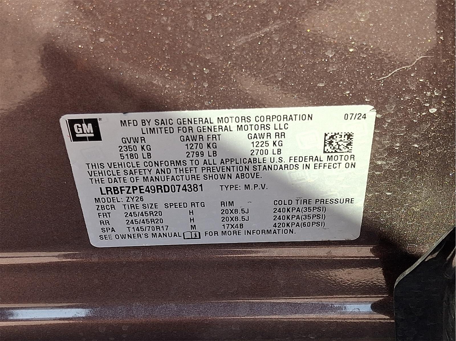 - Tires, P245/45R20 all-season